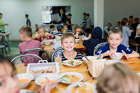Меню составляется согласно разработанному двухнедельному меню Центра гигиены и эпидемиологии. Если ребенок отказывается от принятия пищи (в адаптационный период), мы проводим индивидуальную работу, в результате которой голодным из столовой никто не уходит.